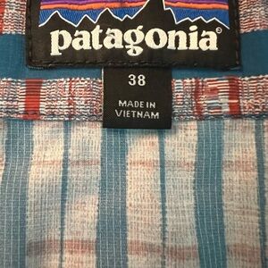 PATAGONIA MEN’S SWIM TRUNKS TEAL AND RUST ABSTRACT PATTERN SIZE 38
