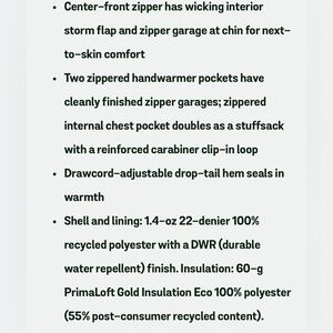 Warm, windproof, water-resistant the Nano Puff Jacket uses incredibly lightweight and highly compressible 60-g PrimaLoft Gold Insulation Eco 100% postconsumer recycled polyester with P.U.R.E.