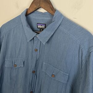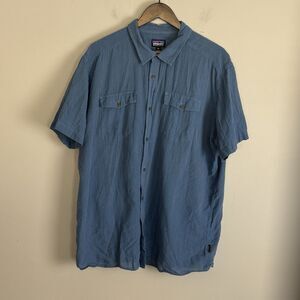 PATAGONIA Mens Blue Pocket Steersman Button Shirt Size XXL Outdoors Hiking Logo