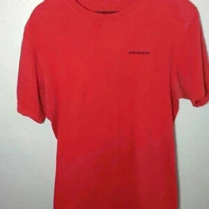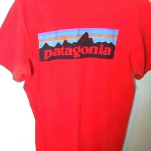 Pre-Owned in Good Shape Men's Patagonia Fitz Roy Horizons Responsibili-Tee. This Tee-shirt is made of 100% recycled materials. By utilizing fabric scraps and recycled bottles, this garment reduces our reliance on virgin materials. Fair Trade Certified sewn. Fire Red Size Medium