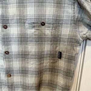 PATAGONIA ORGANIC COTTON MENS SHORT SLEEVE PLAID/CHECK BUTTON DOWN SZ LARGE