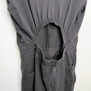Patagonia Organic Cotton Black “Roaming” Jumpsuit. Short Sleeve with an Open Back Detail. Drawstring Waist Detail. Excellent Condition. No Flaws. Size XL
