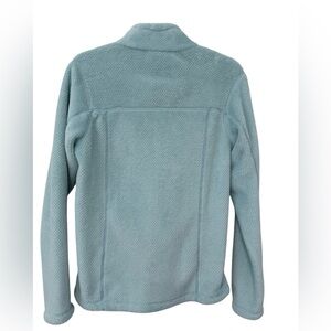 Keywords: north face, athleisure, worn wear, camping, hiking, fishing, sweater, sweatshirt, fleece, synchilla, fair trade, jacket, coat, button, pullover, half zip, quarter zip, sky blue, retired
