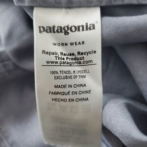 This Patagonia T-Shirt is a must-have for any wardrobe. Made from Tencel material, this shirt is comfortable and durable. The blue color gives it a cool and relaxed vibe, while the crew neck and short sleeves make it perfect for everyday wear. It comes in size XS, making it a great addition for any woman's clothing collection. The shirt is pre-owned but still in excellent condition, ready for its new owner to wear and enjoy.