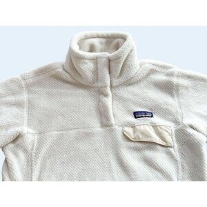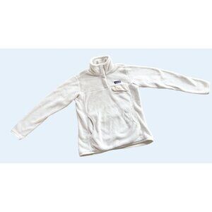 Great pullover fleece by Patagonia. Super soft, comfortable, and warm. 1/4 snap button neck. Single chest pocket. 100% polyester. Size medium. Pre-owned and gently worn in really nice condition!