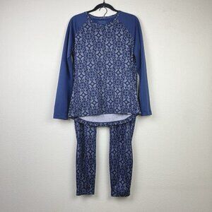 PATAGONIA Women's Large Capilene Midweight Crew Baselayer Top Legging Set Blue