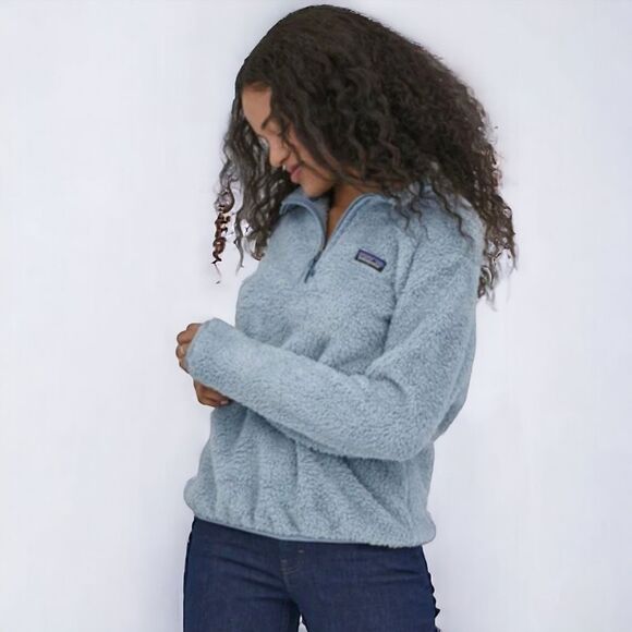 PATAGONIA Women's Outdoor Fuzzy Fleece 1/4 Zip Pullover Mock Neck Blue Gray Sz S