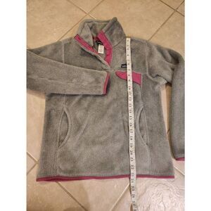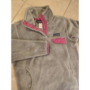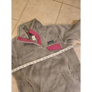 PATAGONIA RETOOL SNAP POCKET FLEECE PULLOVER Gray/Pink womens small good pre-owned condition no stains no holes measurements provided in pictures are approximate please check measurements for proper fit