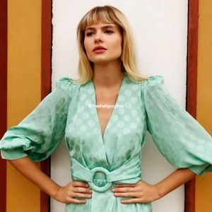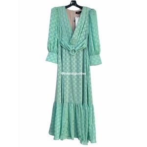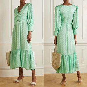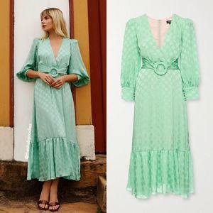 PATBO Dress Satin Dot Belted Midi Dress Green