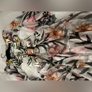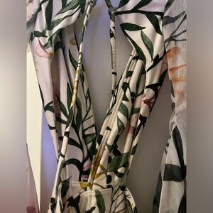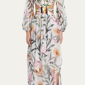 PatBO "Jasmin" floral-print dress with tortoise buckle