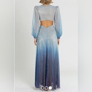 PATBO Ombré Lurex Plunging Cutout Maxi Gown in Aegean Blue Sz 4 Small