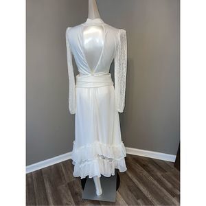 PATBO PLUNGE LACE SLEEVE MAXI DRESS