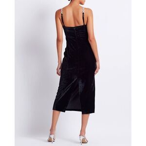 PATBO CRYSTAL CHAIN VELVET MIDI DRESS