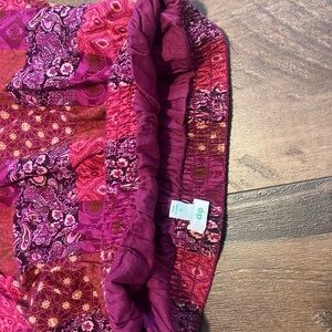 This vibrant women's skirt features stunning pink and red patchwork. Size small. I am personally 5’2 and it goes down to my ankles. Scrunched waist. Perfect for vacations!! Work in Hawaii for pictures twice.