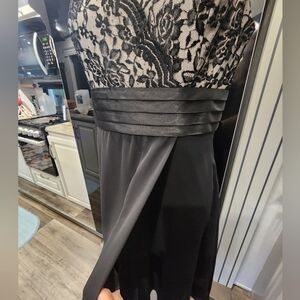 BLACK LACED TOP W/ NUDE LINING AND BOTTOM IS A FLOWY CHIFFON