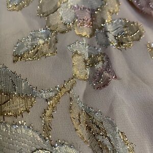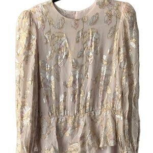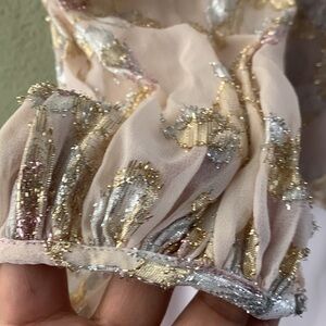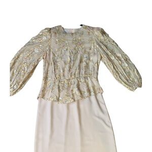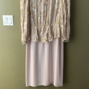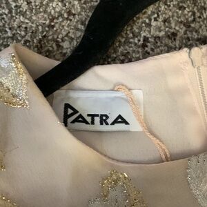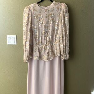 PATRA midi dress with metallic on top plush pink 78%Rayon in great condition puffy sleeve armpit to armpit is 21 inches 41 inches tall