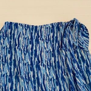 PATRICIA JONES USA LONG SHADE OF BLUE WATER WAVE PATTERN LONG SARONG WITH SIDE TIE SKIRT FULLY LINED SIDE ZIP WAIST LYING FLAT 14" WAIST TO HEM 34" EXCELLENT CONDITION
