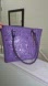 Gorgeous color! Tooled Leather Tote/ Handbag by Patricia Nash. Amazing used condition with just a few marks here and there. The inside is covered in a suede like fabric that is dyed to match. The inside has a zippered wall pocket, a large middle zippered section, and two multifunction pockets on the other wall. The outside features tooled cutouts with metallic lilac peeking through. Magnetic tab closure. Silvertone hardwear and a large exterior pocket on the back.