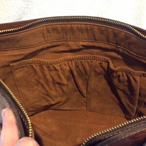 Interior is lined and offers 1 Large zippered pocket & 2 Slip Pockets.