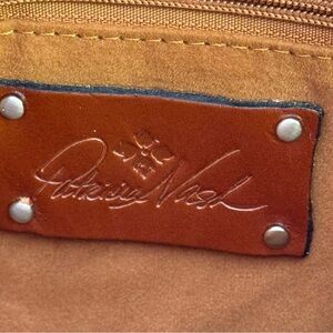 PATRICIA NASH CASSINI STONE LEATHER WRISTLET ZIP GREY FLOWER APPLIQUÉ 9”x7”