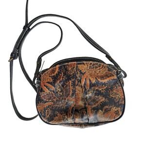 PATRICIA NASH Chania Italian Leather Crossbody Bag Fall Tapestry Blue Orange