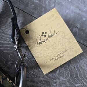 * Exterior: 1 front phone pouch with snap closure, 1 rear zip pocket, deep embossed grape leaf logo, quick release rings, burned edge finish