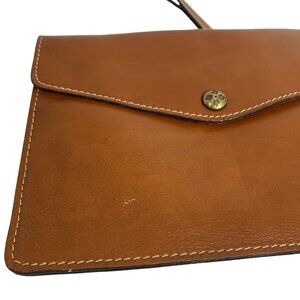 PATRICIA NASH Heritage Tan Leather Snap Flap Envelope Clutch Wristlet Flaw