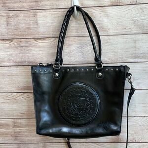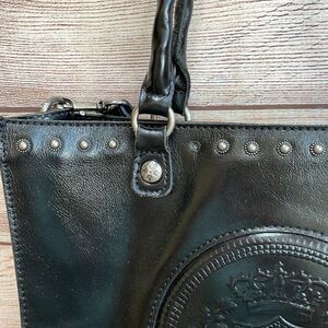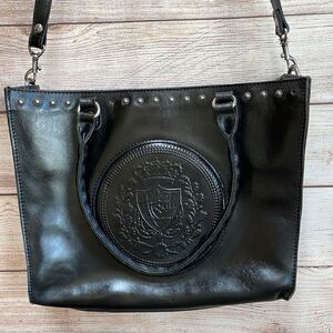 EXCELLENT CONDITION PATRICIA NASH LARGE STUDDED AND EMBOSSED TOTE IN BLACK LEATHER