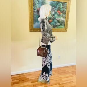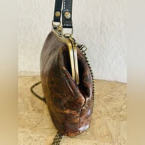 PATRICIA NASH LAURENA SMALL BROWN CHAIN/MIRROR CROC SHOULDER BAG