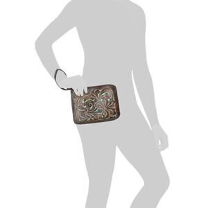PATRICIA NASH LEATHER TOOLED CASSINI TURQUOISE BROWN WRISTLET CLUTCH PURSE BAG N