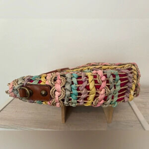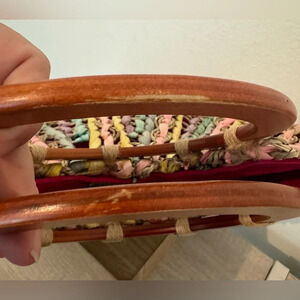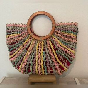 PATRICIA NASH Lesa Multicolor Pastel Straw Bag Wood Ring Handle Boho NO STRAP