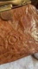 Gorgeous satchel from Patricia Nash! This is a hard to find colorway that I believe was an online exclusive. This bag features both a top handle and adjustable crossbody strap. Structured frame, latch closure with leather pull tab. Interior features the brand’s signature velvety faux suede lining, two slip pockets, and a zipper pocket. Exterior features absolutely gorgeous tooling detail with metallic gold shimmer. Light scuff marks on bottom, light handle/strap wear, minor discoloration on inner lining. Overall excellent condition otherwise. This is a genuinely stunning handbag!