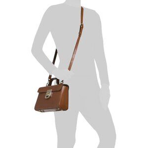 PATRICIA NASH Tan Leather Carisbrooke Satchel With Twist Lock Closure