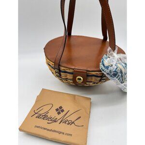 PATRICIA NASH Thea Mini rattan basket crossbody bag with Greek Floral scarf