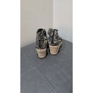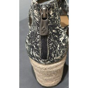 The PATRICIA NASH Wedge Espadrilles in size 6M are stylish ladies sandals in a black/tan color combination, perfect for summer and spring occasions. Featuring a floral pattern and a high wedge heel, these sandals have a zip closure and are made of fabric material. With a bohemian theme and a comfortable M width, these espadrilles by Patricia Nash are a fashionable choice for casual wear.