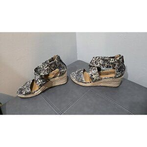 PATRICIA NASH Wedge sandals womens SIZE 6M BLACK TAN cruise Resort floral y2k