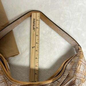 The Patricia Nash Tan Hobo Bag showcases a classic crescent-shaped design with luxurious tan leather accents and a chic tassel detail. Its spacious interior and elegant silhouette make it a versatile accessory for any occasion. See all photos as they are part of description