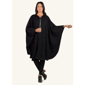 PATRICIA NASH hooded vintage long cape topper with clasp - Black - One size