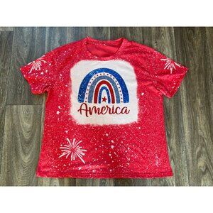 PATRIOTIC AMERICA SHIRT PULLOVER SHORT SLEEVE FIREWORKS USA FLAG WOMENS XL