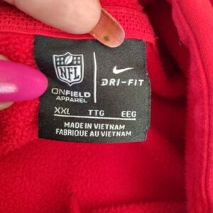 Nike Patriots hoodie in vibrant red and blue. Features team logo and full zip. and ONFIELD TAG ON FRONT LEFT POCKET. PIT TO PIT 27". LENGTH 28". SMOKE/PET FREE HOME