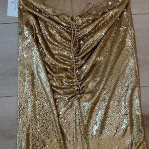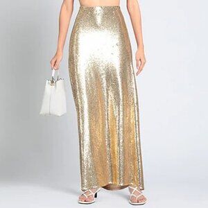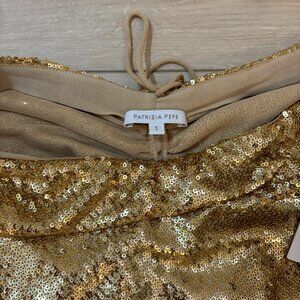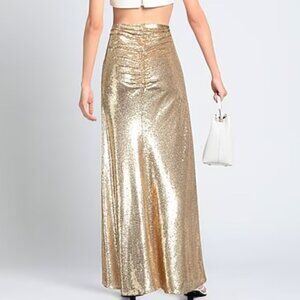 PATRIZIA PEPE Gold Sequin Fishtail Maxi Gonna Skirt
