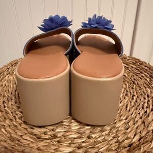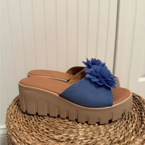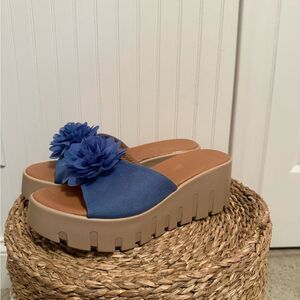 Step into style with 's blue floral wedge sandals. These chic shoes feature a vibrant blue hue and a comfortable wedge design, perfect for any occasion.