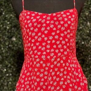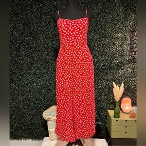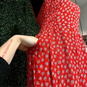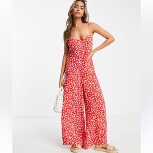 PATRONS OF PEACE wide legged red floral jumpsuit pockets boho tie back w…