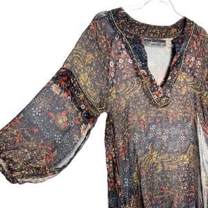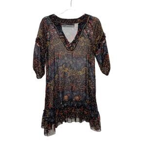 PATTERSON J. KINCAID Printed Chiffon Sheer Tunic Dress Black Multicolor Size XS