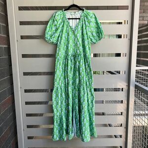 PATTY KIM Mint Floral Puff Sleeve Maxi Dress