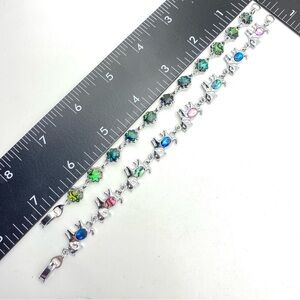 PAUA Shell Bracelets Set of Two Multi-Colored Cat Bracelet & Blue Shell Bracelet. Cat bracelet measures approx 8" and other one is approx 7". Links may be removed if you desire smaller size. Excellent condition, appear like new and may have only been gently worn. #23