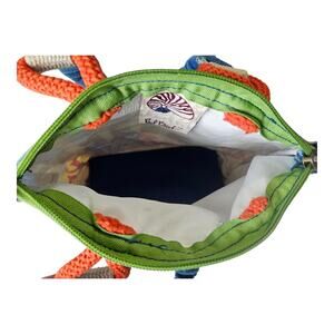 PAUL BRENT Sun and Sand Purse - Small Tote Bag, Zipper Closure, Multicolor, Painted Canvas, Beach / Flip Flops, Logo, Sequins