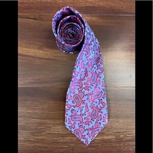 PAUL FREDRICK Dressy 100% Silk Light Blue Paisley Necktie