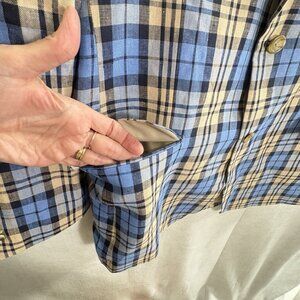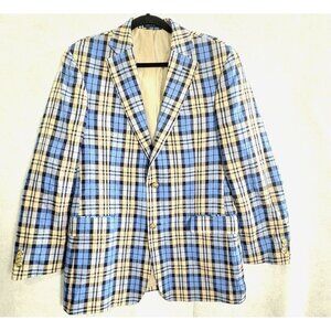 PAUL FREDRICK Men Blazer Plaid Linen 2 Button Shoulder Pads Sz 40R Blue H-H