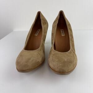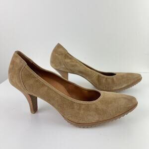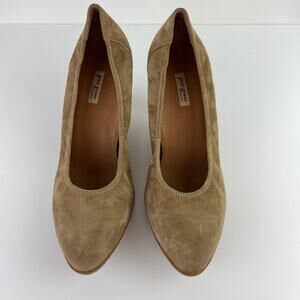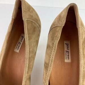 PAUL GREEN Camel Tan Suede Upper Wooden Kitten Heels Almond Toe Size UK 7 US 9.5